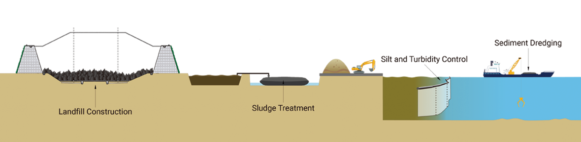 - Landfill Management: Secure liners and caps for safe waste containment.