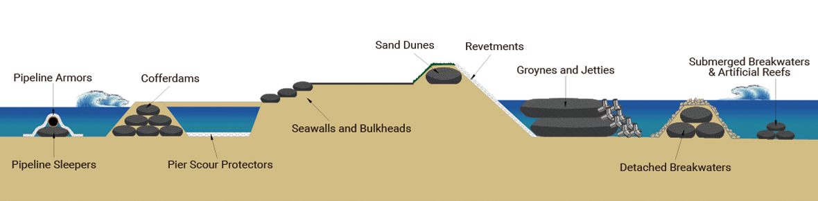 - Coastal Protection: Prevent erosion along beaches and cliffs.